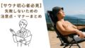 サウナに初めて挑戦する人にとって、「どうやって入ればいいの?」「ルールやマナーが分からない…」と不安に思うこともあるでしょう。